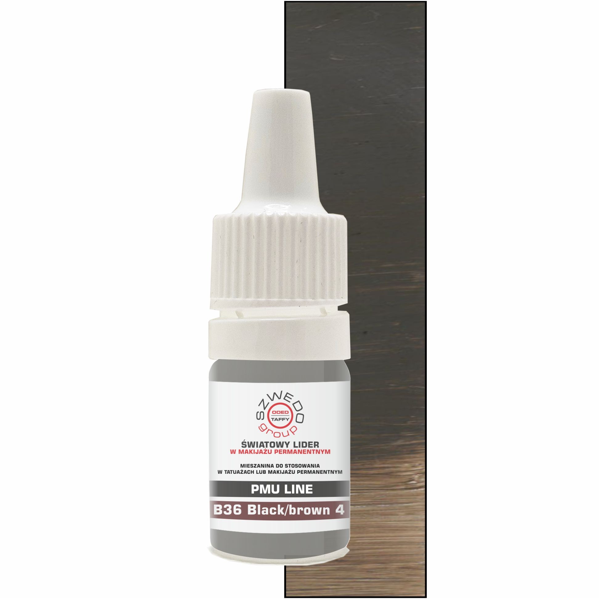 B36 Black/Brown 4 to średnio ciemny, neutralny pigment brązowy o wysokim nasyceniu, przeznaczony do makijażu permanentnego brwi. Po wygojeniu przybiera ciepły, naturalny odcień brązu, pozbawiony czerwonych i niepożądanych tonów. To doskonały wybór do pigmentacji u klientek preferujących stonowane, naturalne efekty bez przesadnej intensywności.