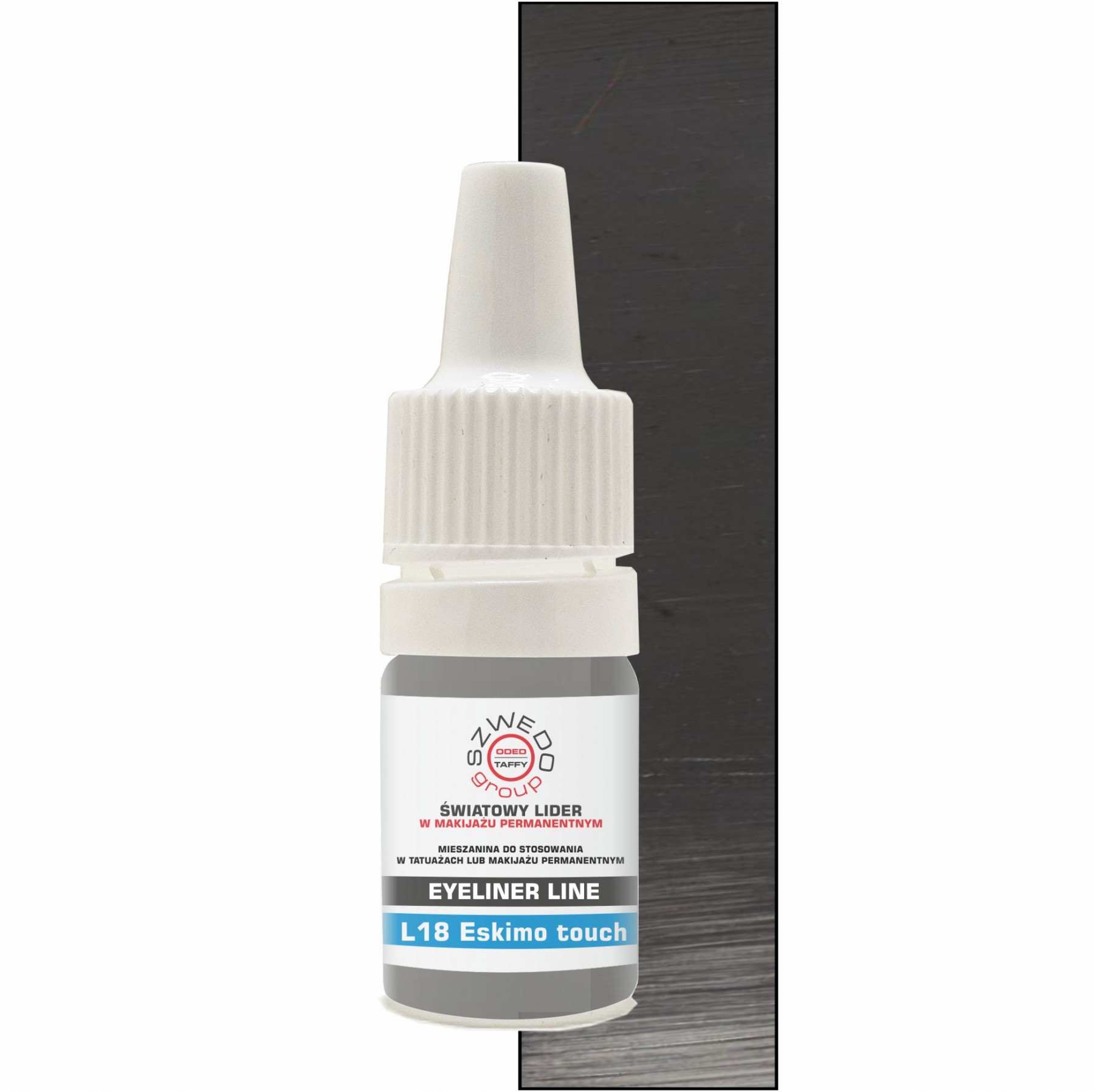 L18 Eskimo touch to czarny pigment o wysokim nasyceniu, przeznaczony do makijażu permanentnego i linii. Charakteryzuje się zimną tonacją oraz stabilnością wygojenia – daje efekt czystego, ciemnego grafitu, bez sinienia i niepożądanych odcieni zieleni czy czerwieni.